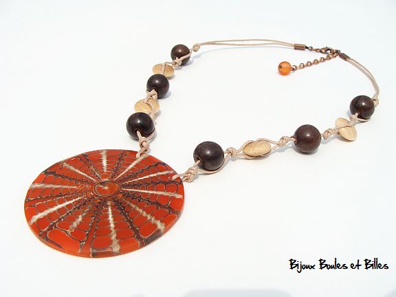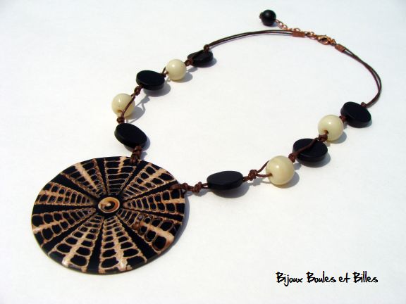 resin, shell, wood and waxed cord